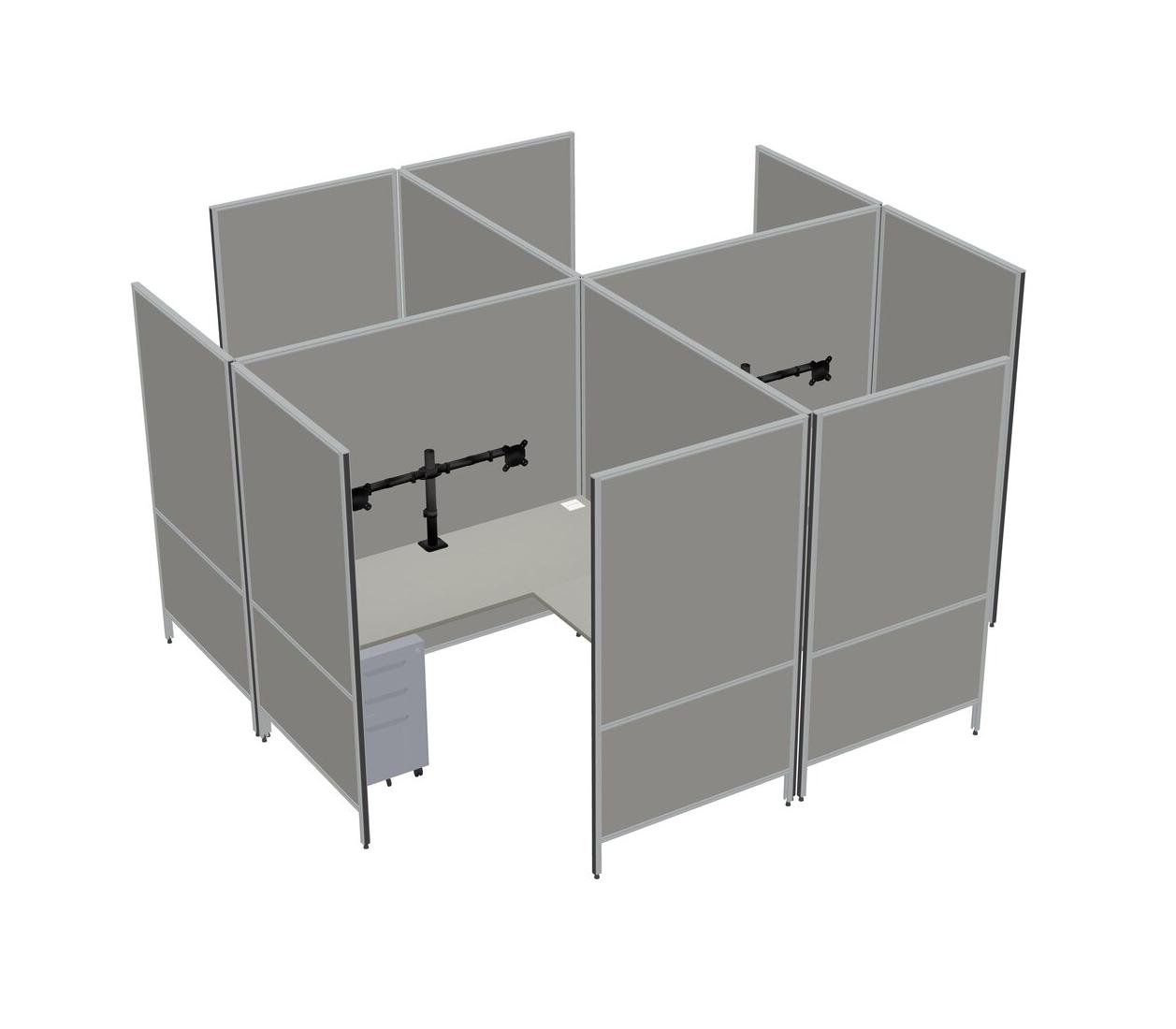 Grey Shadows Modern Modular Quad L-Shaped Panel System + Metal Mobile Drawers + Monitor Arm (double Arms)
