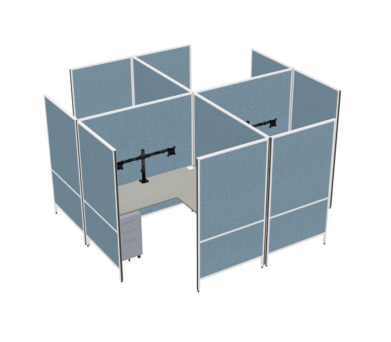 Grey Shadows Modern Modular Quad L-Shaped Panel System + Metal Mobile Drawers + Monitor Arm (double Arms)
