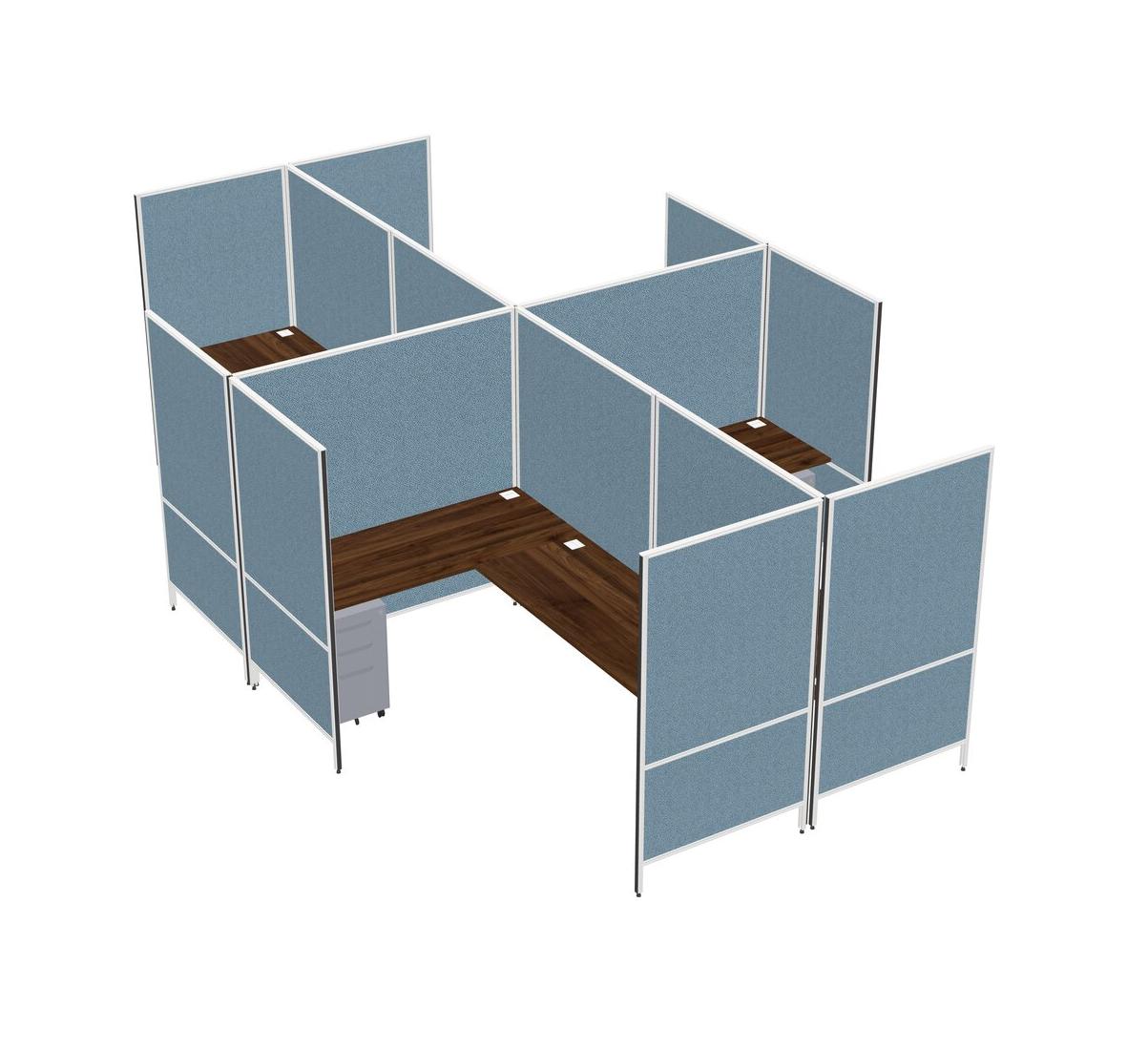 Columbia Walnut Modern Modular Quad L-Shaped Panel System + Metal Mobile Drawers