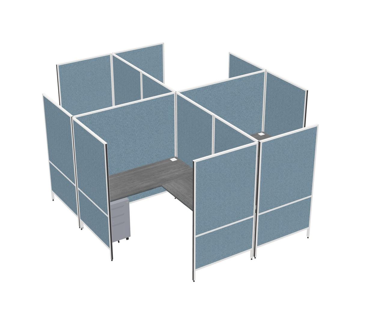 Grey Modern Modular Quad L-Shaped Panel System + Metal Mobile Drawers