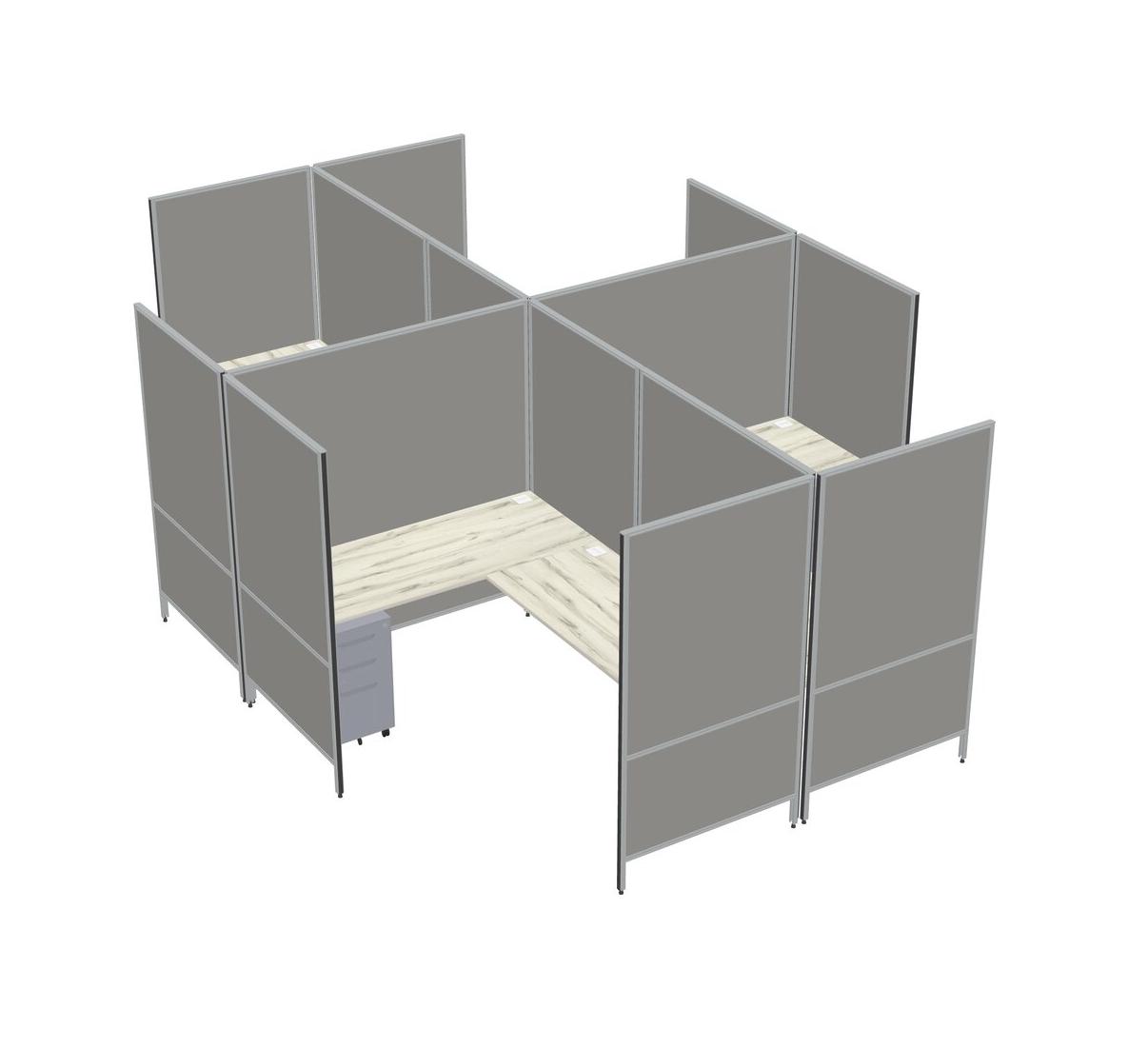 Heinne Holz Modern Modular Quad L-Shaped Panel System + Metal Mobile Drawers