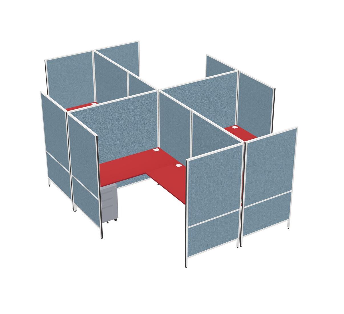 Prism Red Modern Modular Quad L-Shaped Panel System + Metal Mobile Drawers