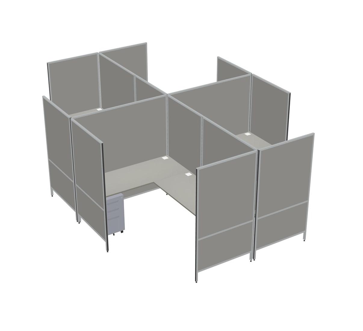 Grey Shadows Modern Modular Quad L-Shaped Panel System + Metal Mobile Drawers