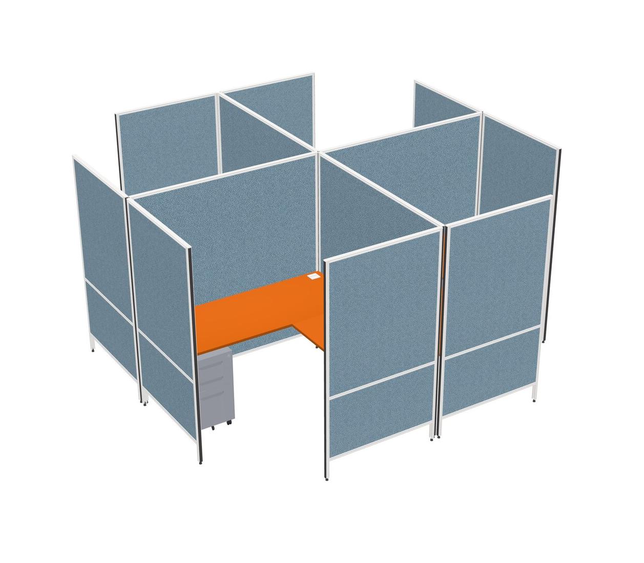 Orange Modern Modular Quad L-Shaped Panel System + Metal Mobile Drawers