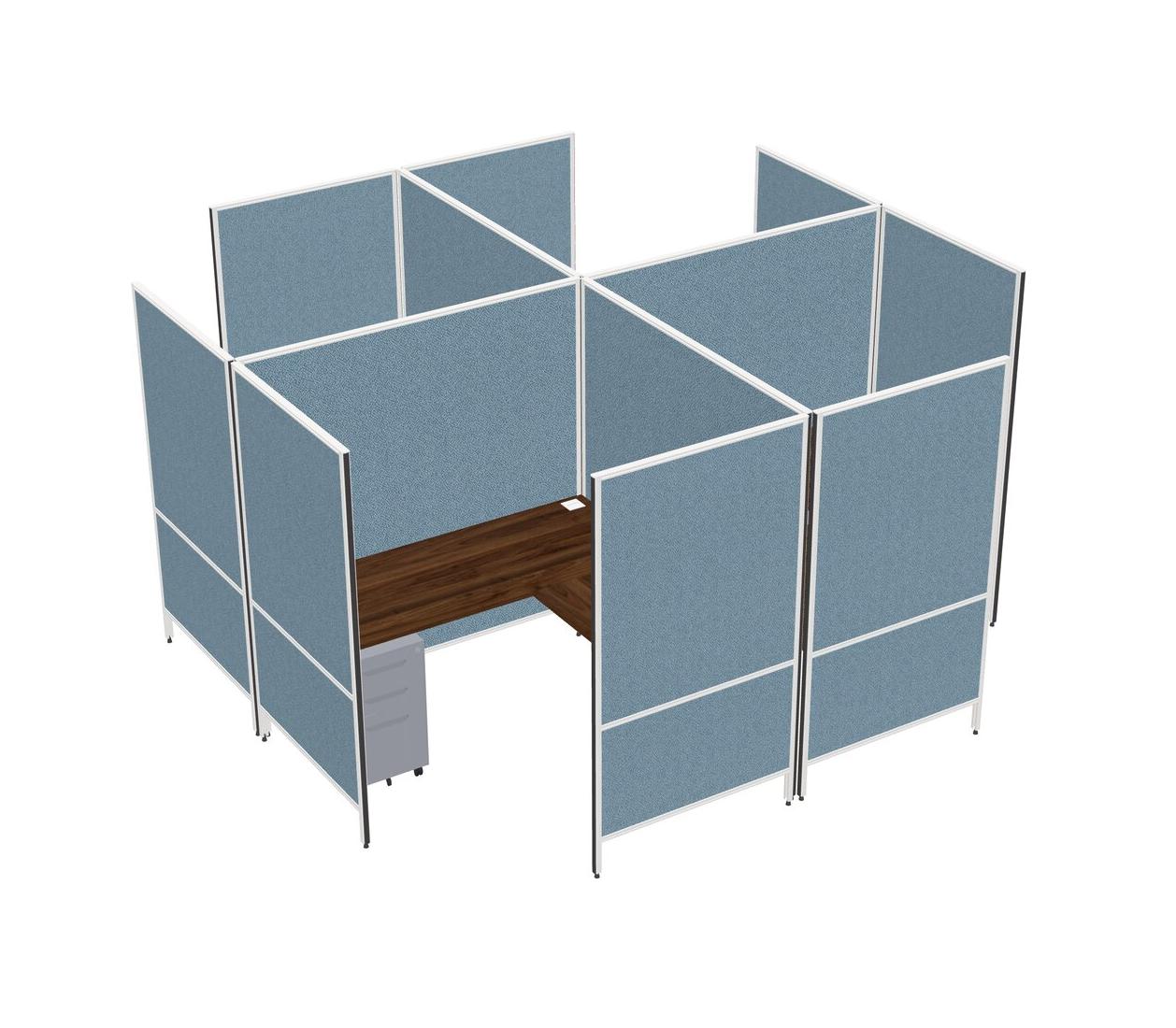 Columbia Walnut Modern Modular Quad L-Shaped Panel System + Metal Mobile Drawers