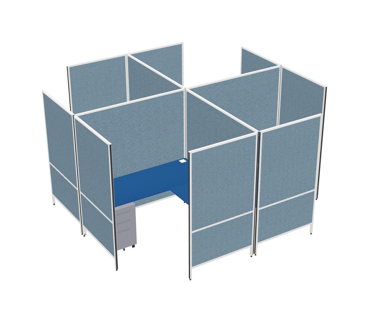 Prism Blue Modern Modular Quad L-Shaped Panel System + Metal Mobile Drawers