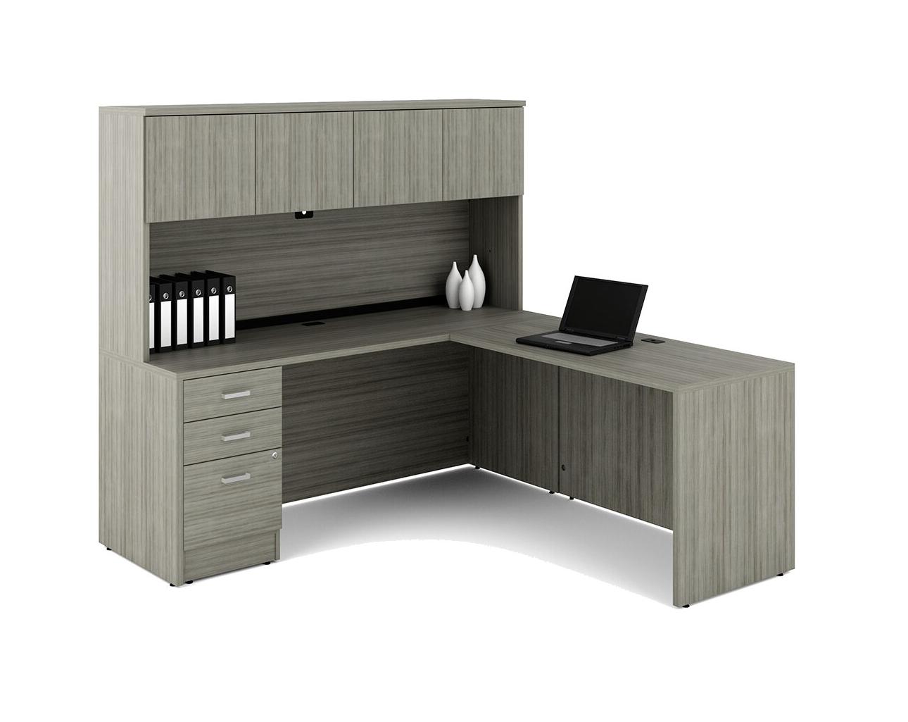 Noce Grigio-NGL L-Shaped Commercial Grade Office Desk With Fixed Drawers + With Hutch