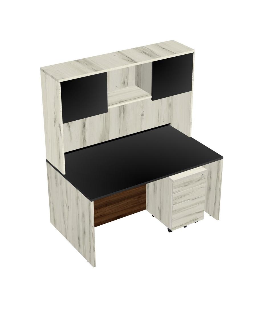 Black Rectangular Office Desk Plus Heinne Holz Wooden Mobile Drawers And Heinne Holz Hutch