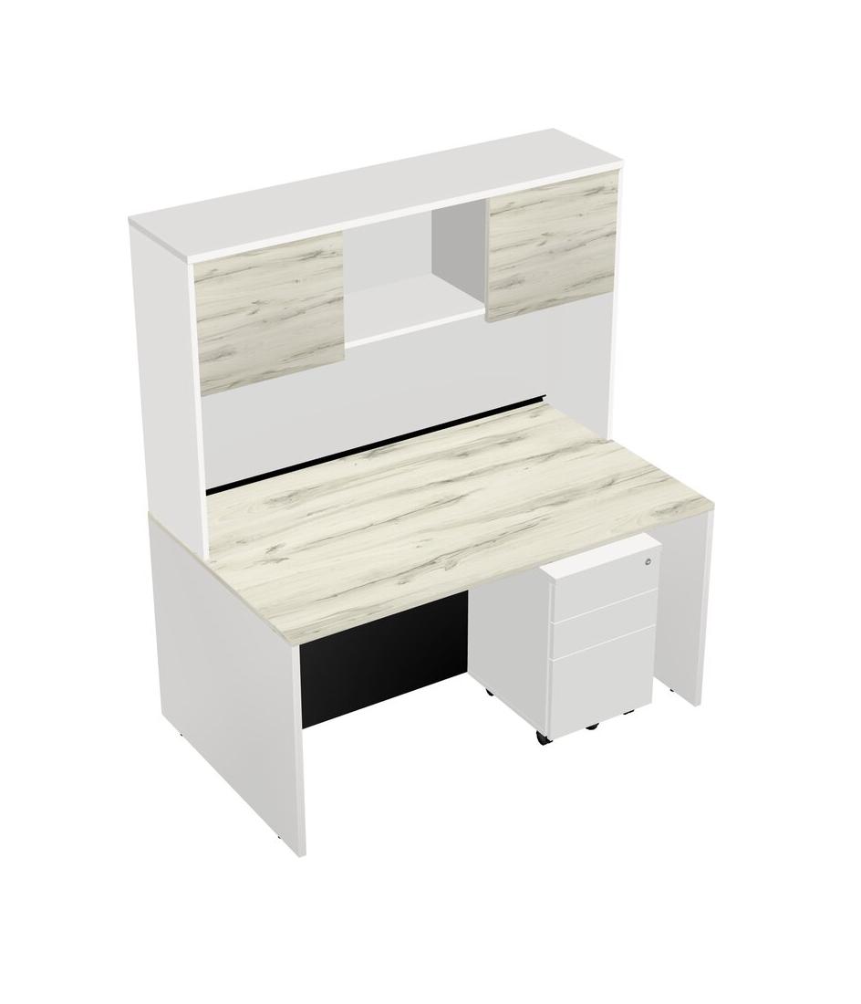 Heinne Holz Rectangular Office Desk Plus White Wooden Mobile Drawers And White Hutch