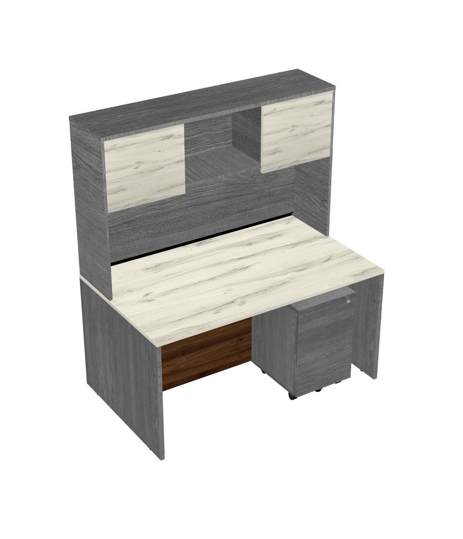 Heinne Holz Rectangular Office Desk Plus Grey Wooden Mobile Drawers And Grey Hutch