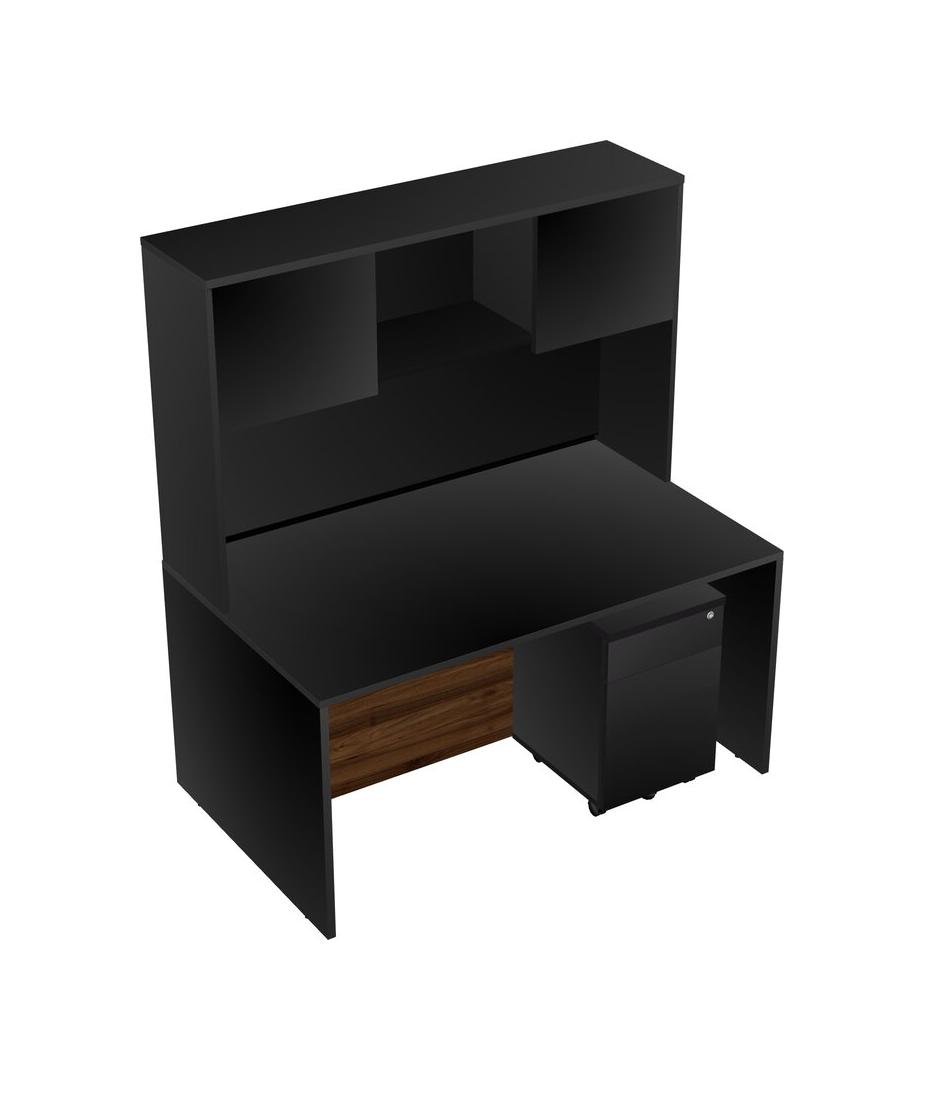 Black Rectangular Office Desk Plus Black Wooden Mobile Drawers And Black Hutch