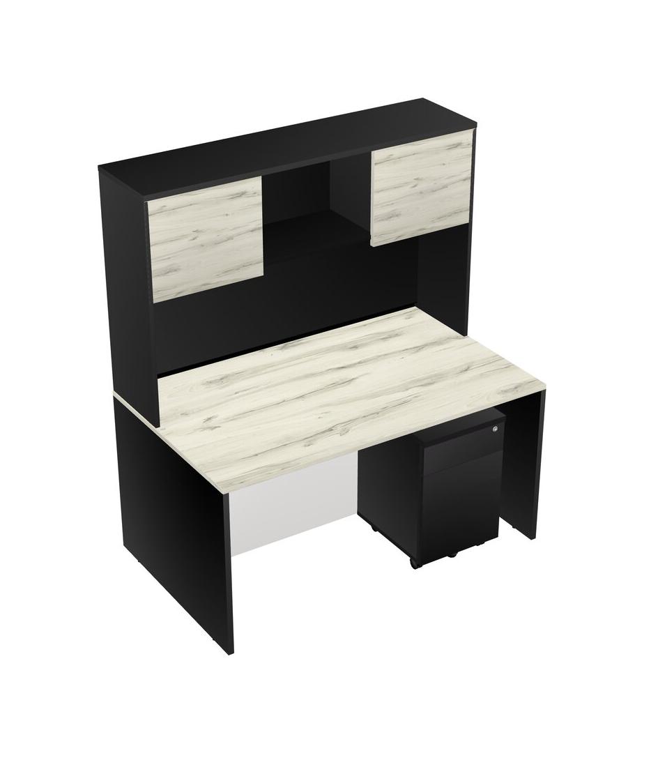 Heinne Holz Rectangular Office Desk Plus Black Wooden Mobile Drawers And Black Hutch