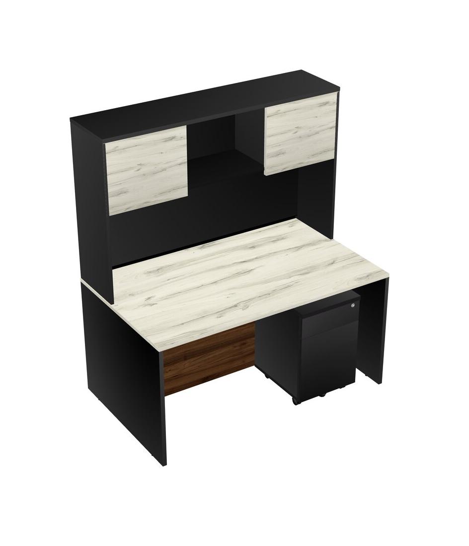 Heinne Holz Rectangular Office Desk Plus Black Wooden Mobile Drawers And Black Hutch