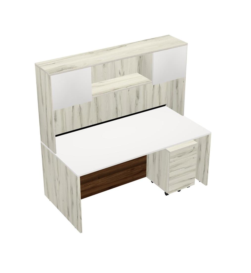 White Rectangular Office Desk Plus Heinne Holz Wooden Mobile Drawers And Heinne Holz Hutch