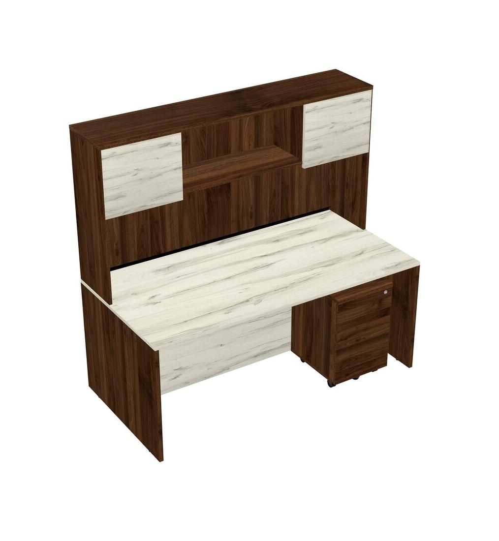 Heinne Holz Rectangular Office Desk Plus Columbia Walnut Wooden Mobile Drawers And Columbia Walnut Hutch