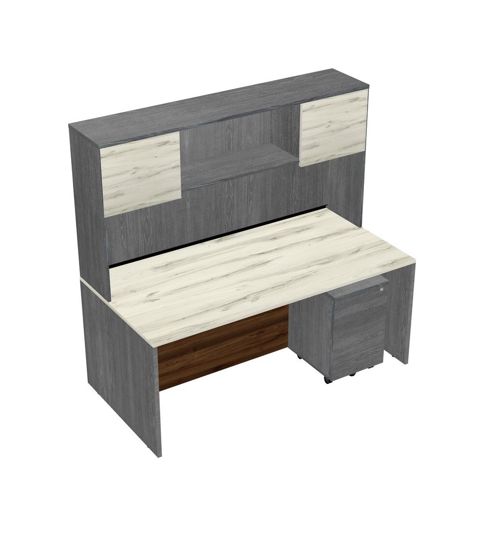 Heinne Holz Rectangular Office Desk Plus Grey Wooden Mobile Drawers And Grey Hutch