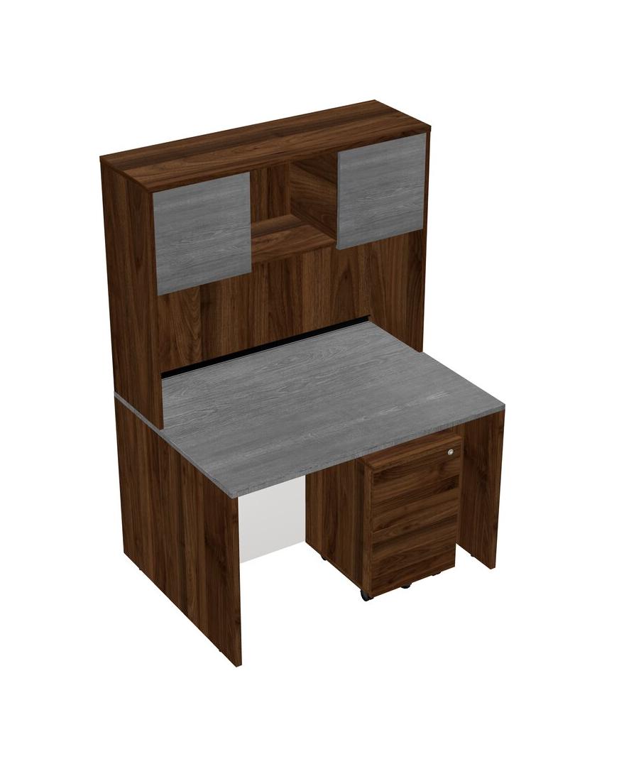 Grey Rectangular Office Desk Plus Columbia Walnut Wooden Mobile Drawers And Columbia Walnut Hutch