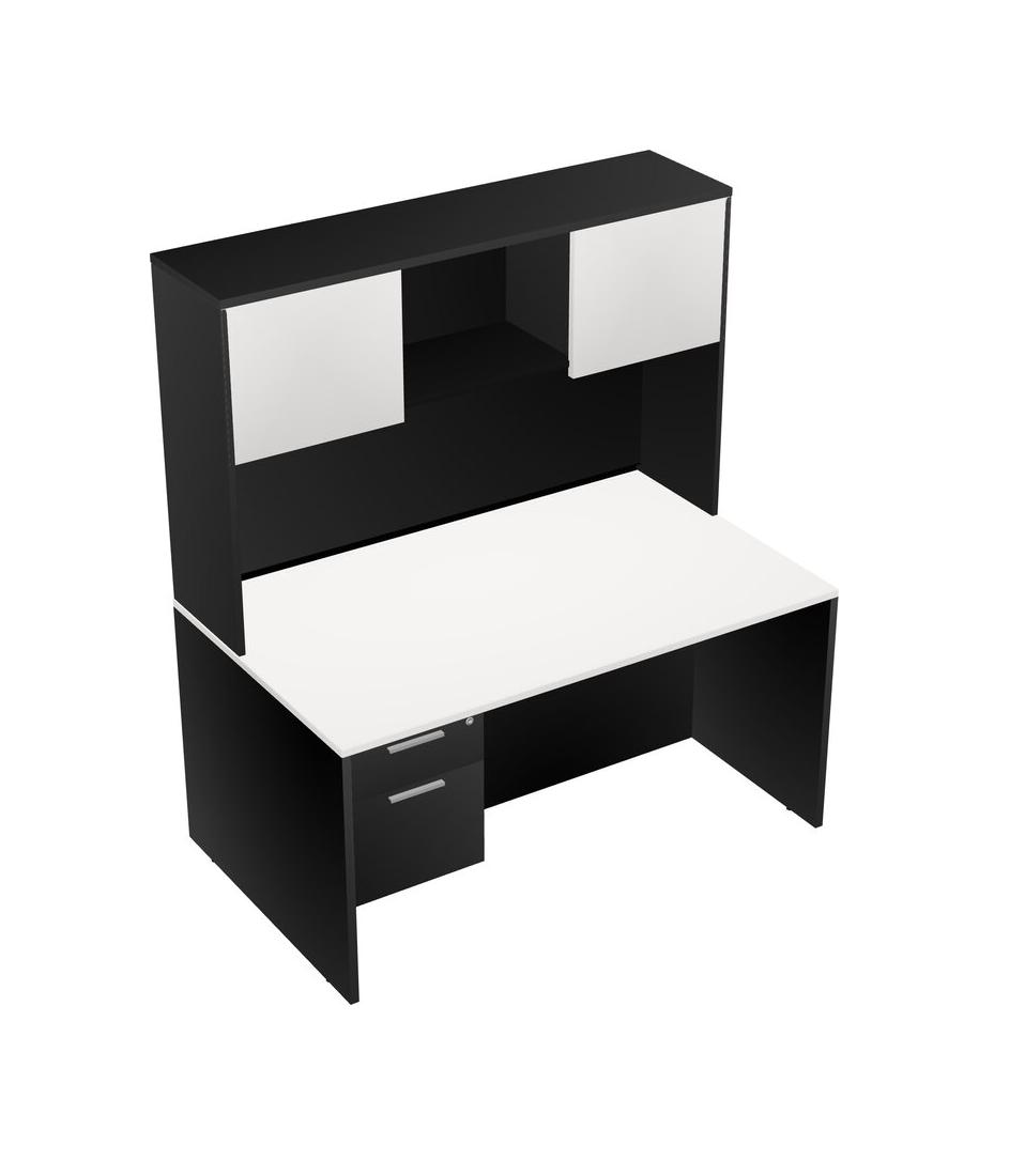 White Rectangular Office Desk Plus Black Hanging Drawers And Black Hutch