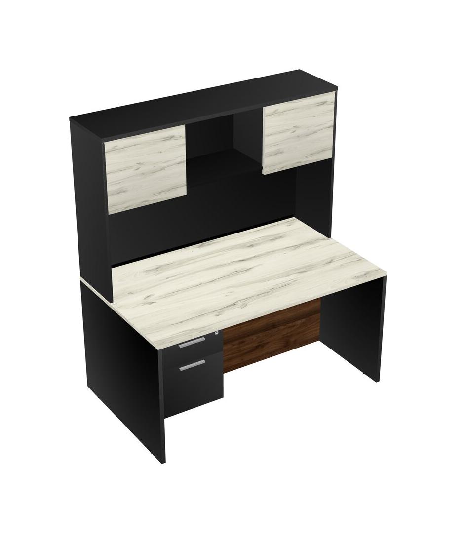 Heinne Holz Rectangular Office Desk Plus Black Hanging Drawers And Black Hutch