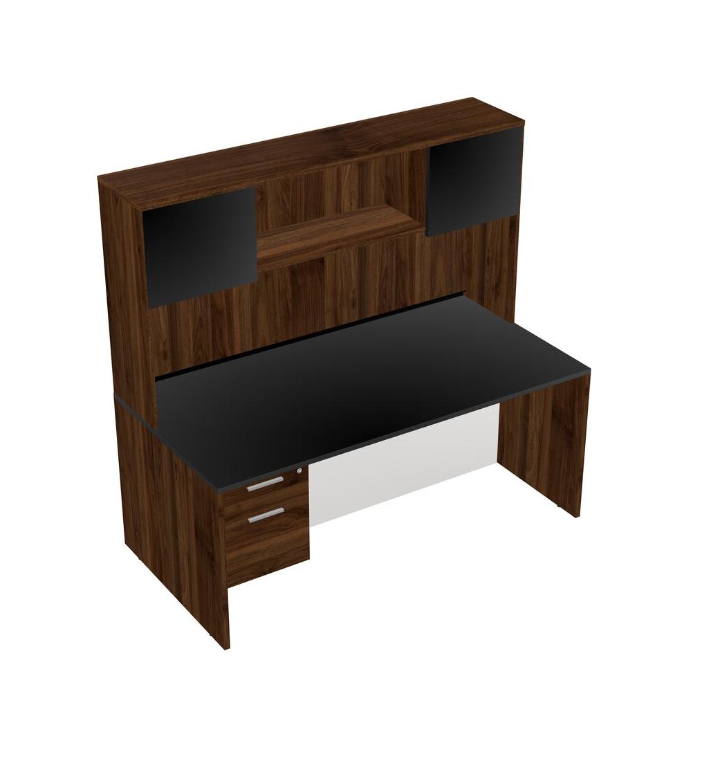 Black Rectangular Office Desk Plus Columbia Walnut Hanging Drawers And Columbia Walnut Hutch