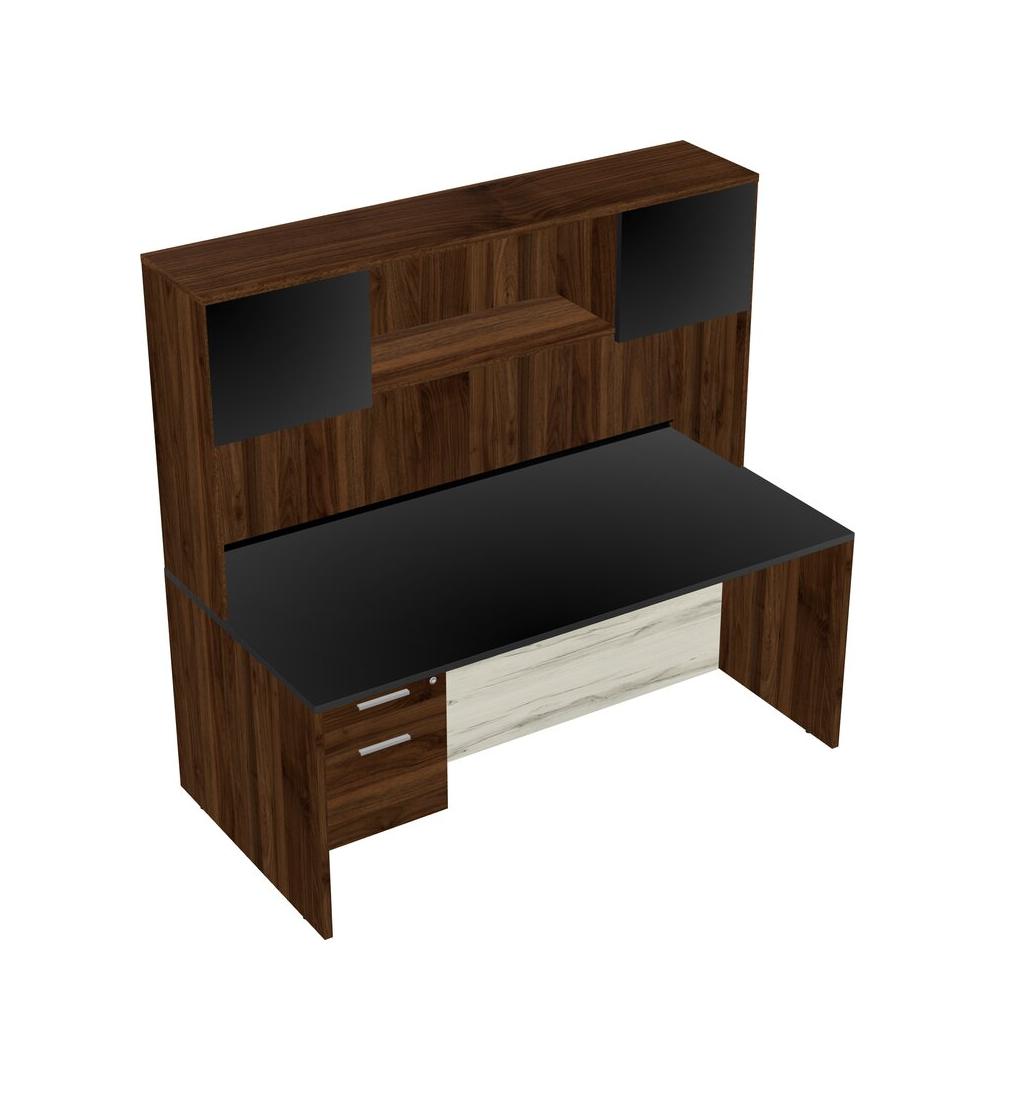 Black Rectangular Office Desk Plus Columbia Walnut Hanging Drawers And Columbia Walnut Hutch