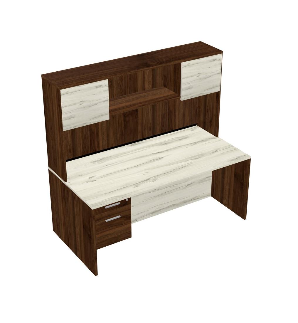 Heinne Holz Rectangular Office Desk Plus Columbia Walnut Hanging Drawers And Columbia Walnut Hutch