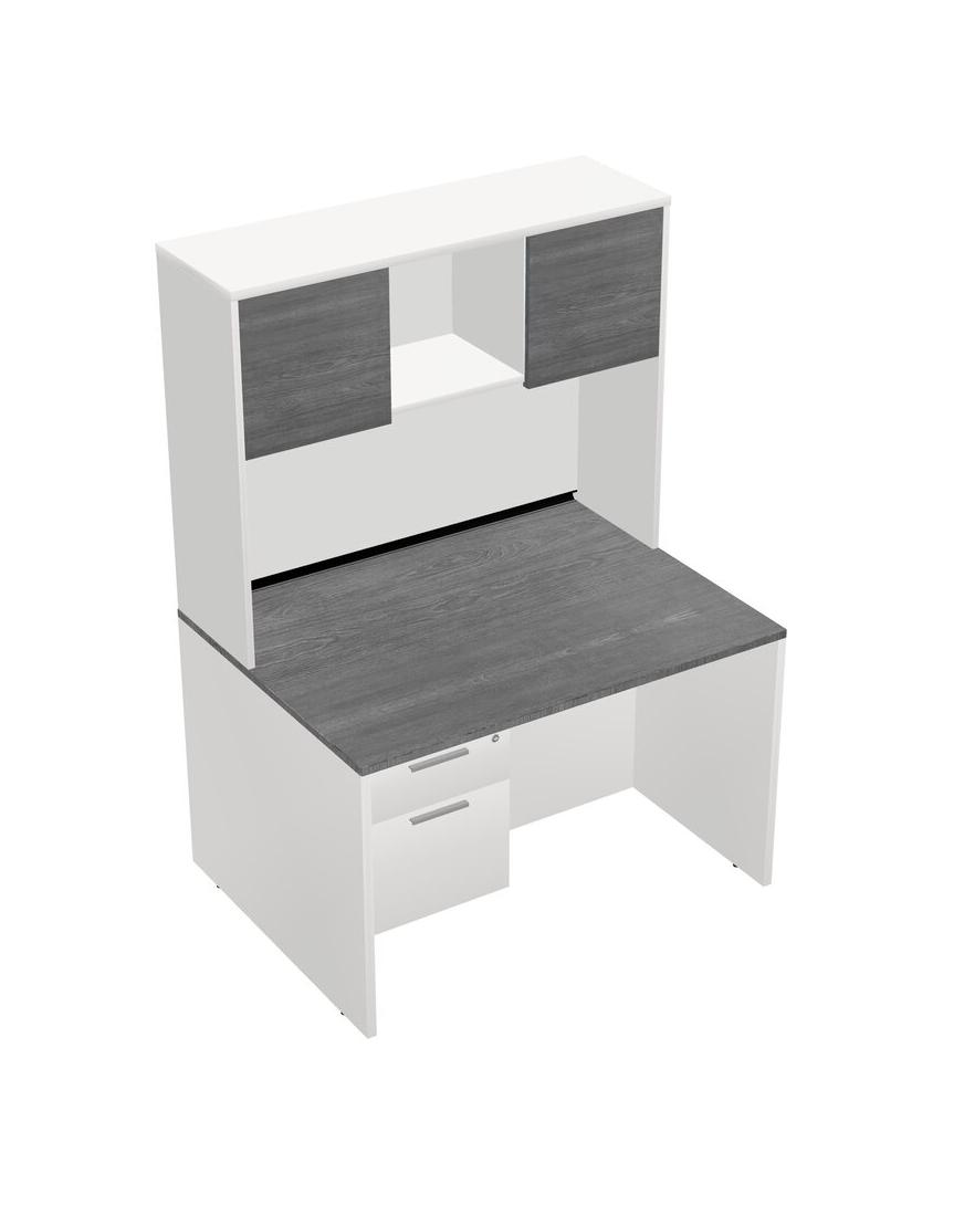 Grey Rectangular Office Desk Plus White Hanging Drawers And White Hutch