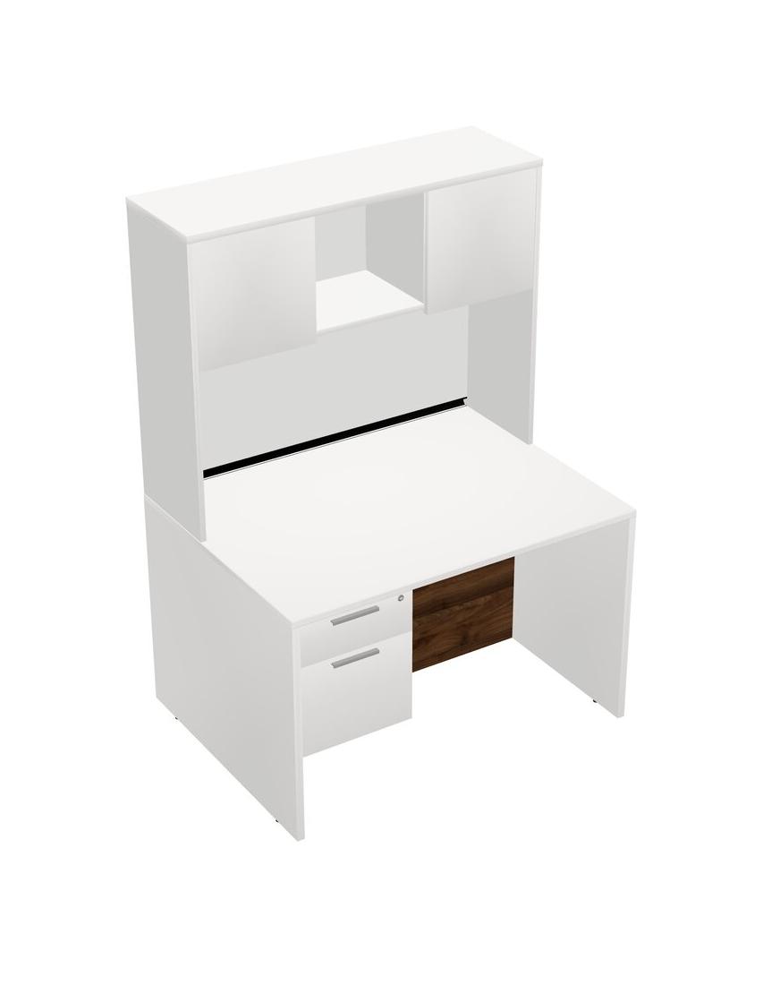 White Rectangular Office Desk Plus White Hanging Drawers And White Hutch