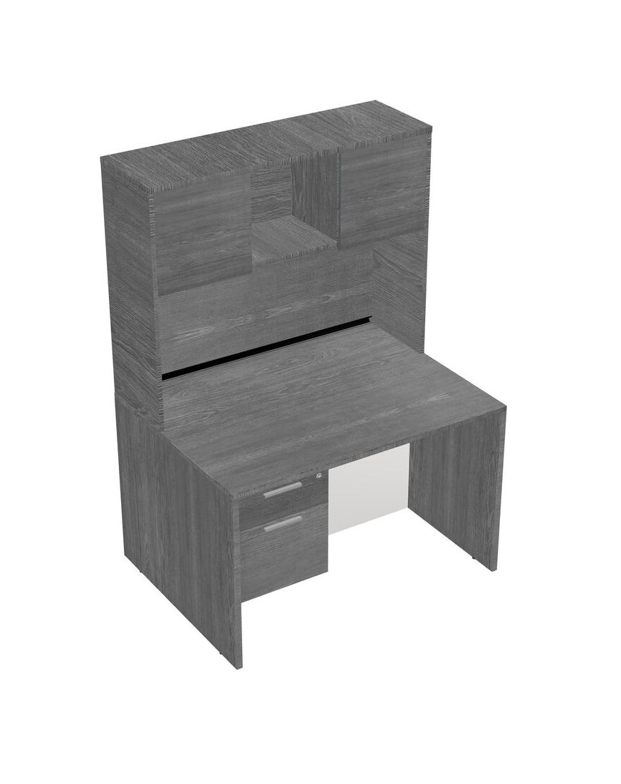 Grey Rectangular Office Desk Plus Grey Hanging Drawers And Grey Hutch