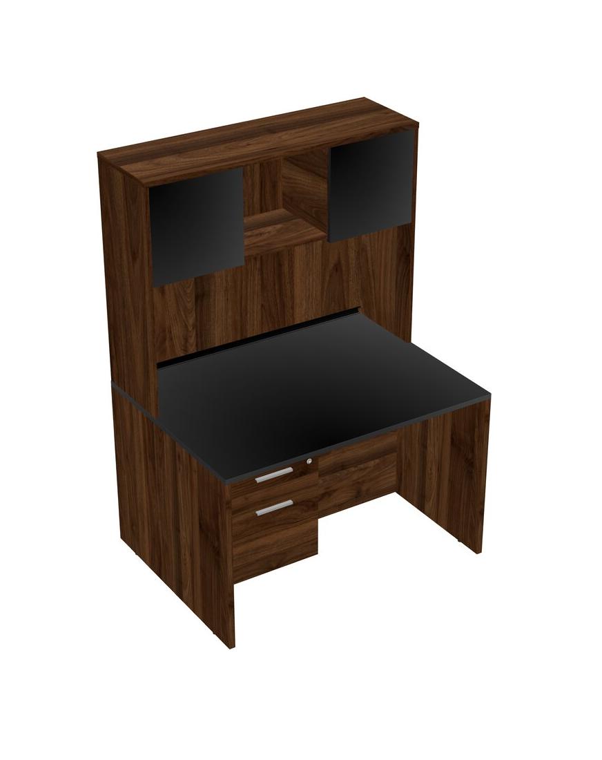 Black Rectangular Office Desk Plus Columbia Walnut Hanging Drawers And Columbia Walnut Hutch