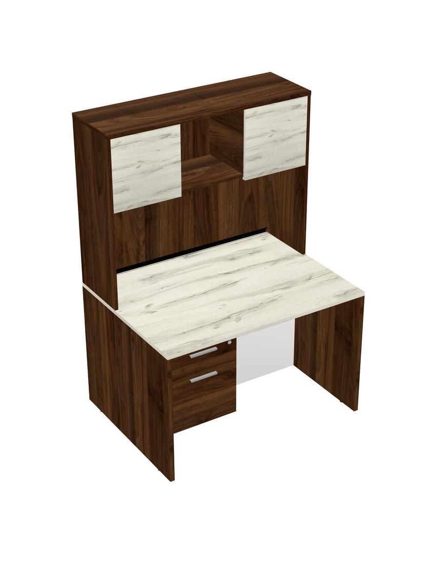 Heinne Holz Rectangular Office Desk Plus Columbia Walnut Hanging Drawers And Columbia Walnut Hutch