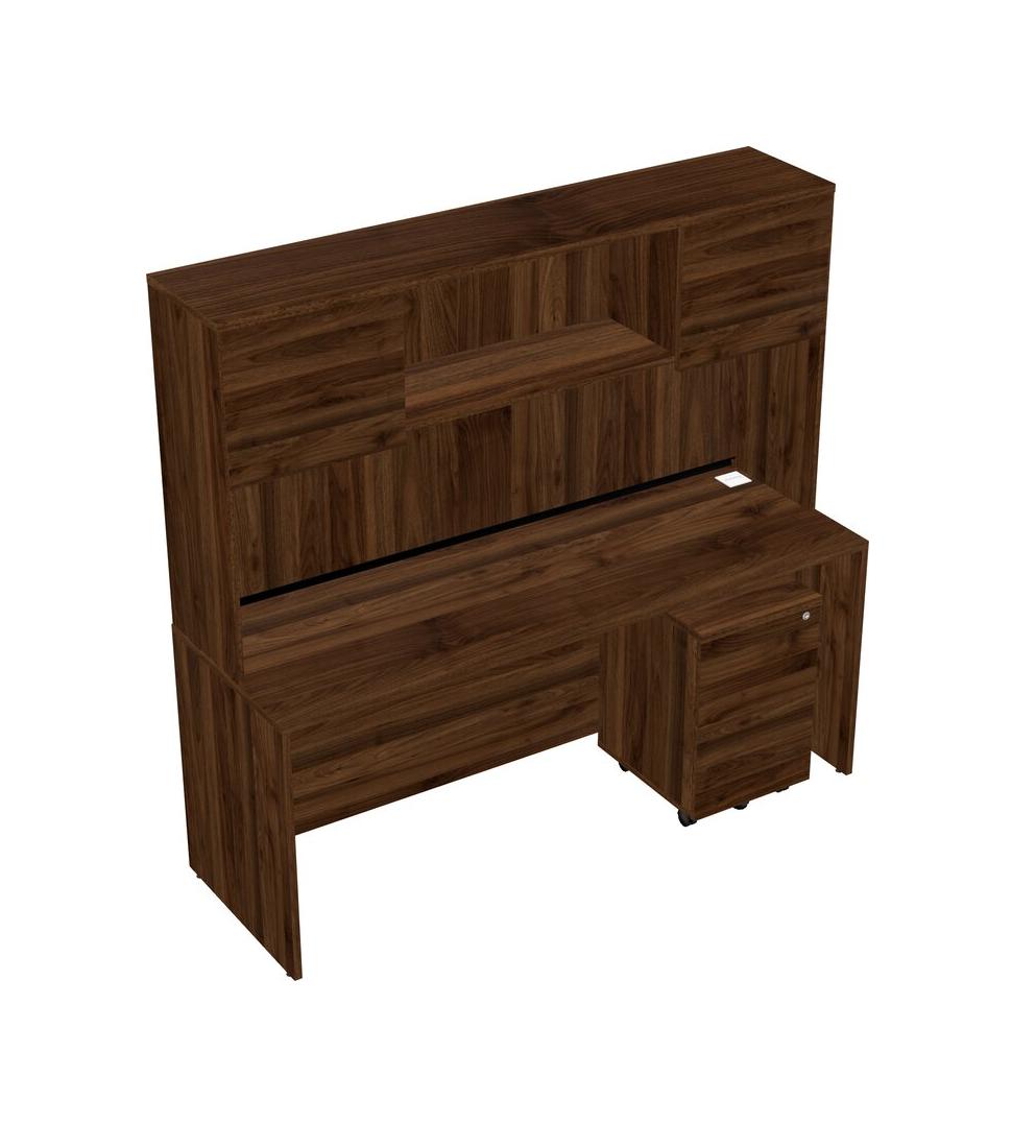Columbia Walnut Rectangular Office Desk Plus Columbia Walnut Wooden Mobile Drawers And Columbia Walnut Hutch