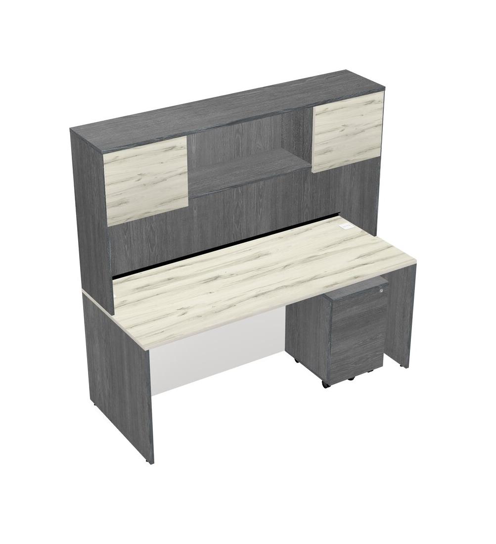 Heinne Holz Rectangular Office Desk Plus Grey Wooden Mobile Drawers And Grey Hutch