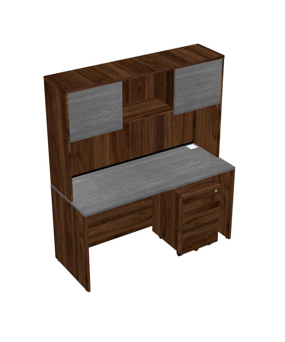 Grey Rectangular Office Desk Plus Columbia Walnut Wooden Mobile Drawers And Columbia Walnut Hutch