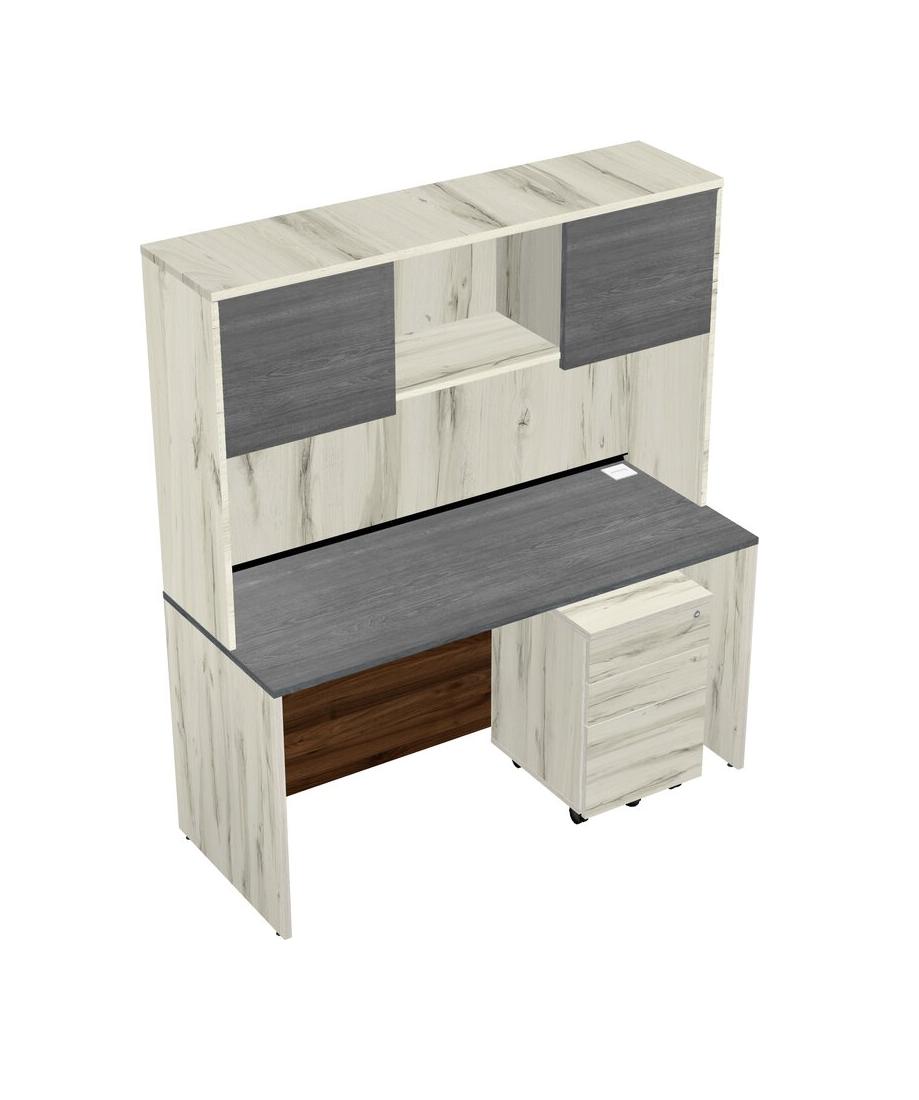 Grey Rectangular Office Desk Plus Heinne Holz Wooden Mobile Drawers And Heinne Holz Hutch