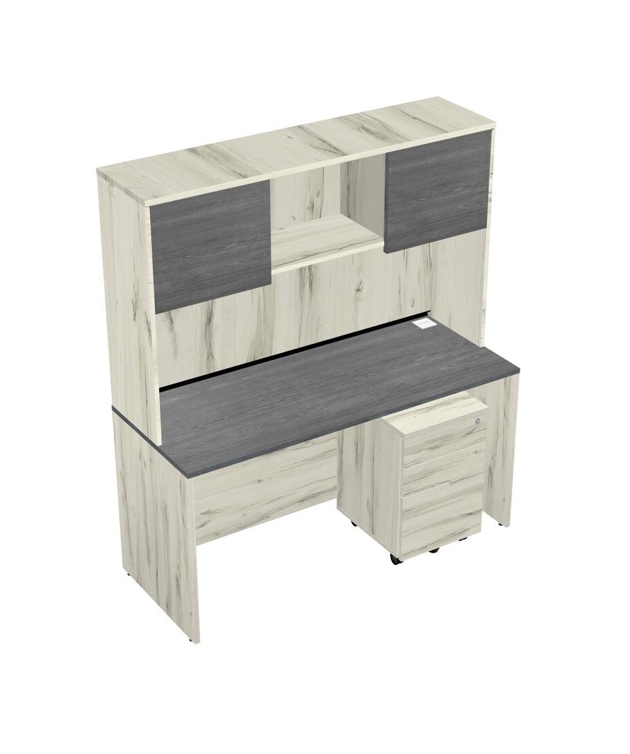 Grey Rectangular Office Desk Plus Heinne Holz Wooden Mobile Drawers And Heinne Holz Hutch