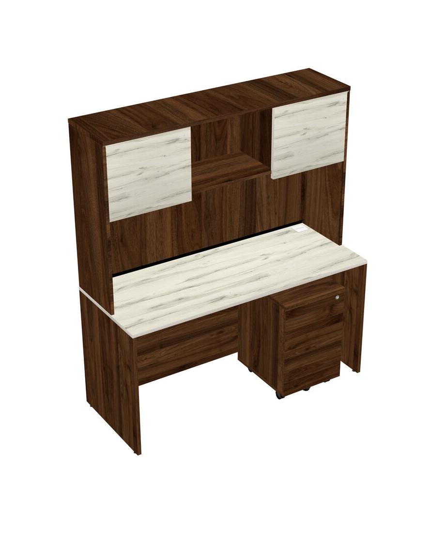 Heinne Holz Rectangular Office Desk Plus Columbia Walnut Wooden Mobile Drawers And Columbia Walnut Hutch