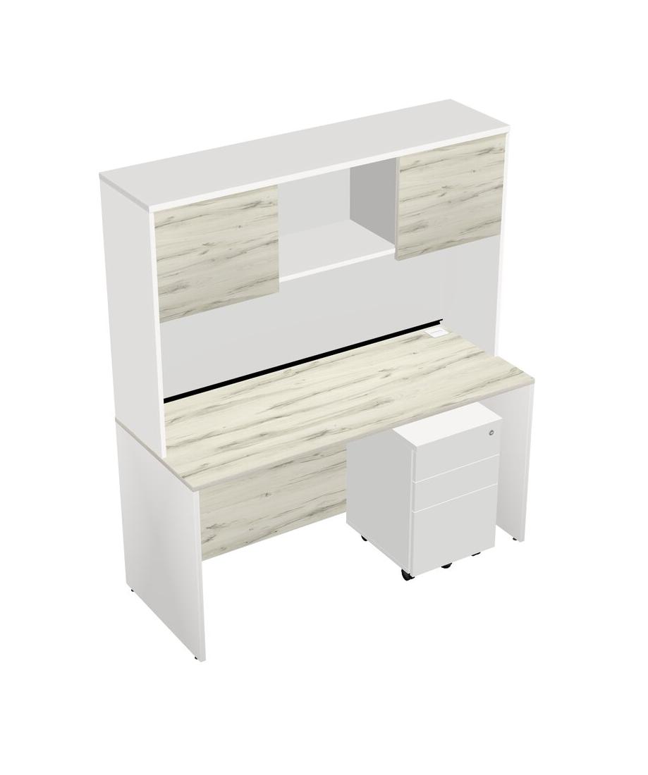 Heinne Holz Rectangular Office Desk Plus White Wooden Mobile Drawers And White Hutch