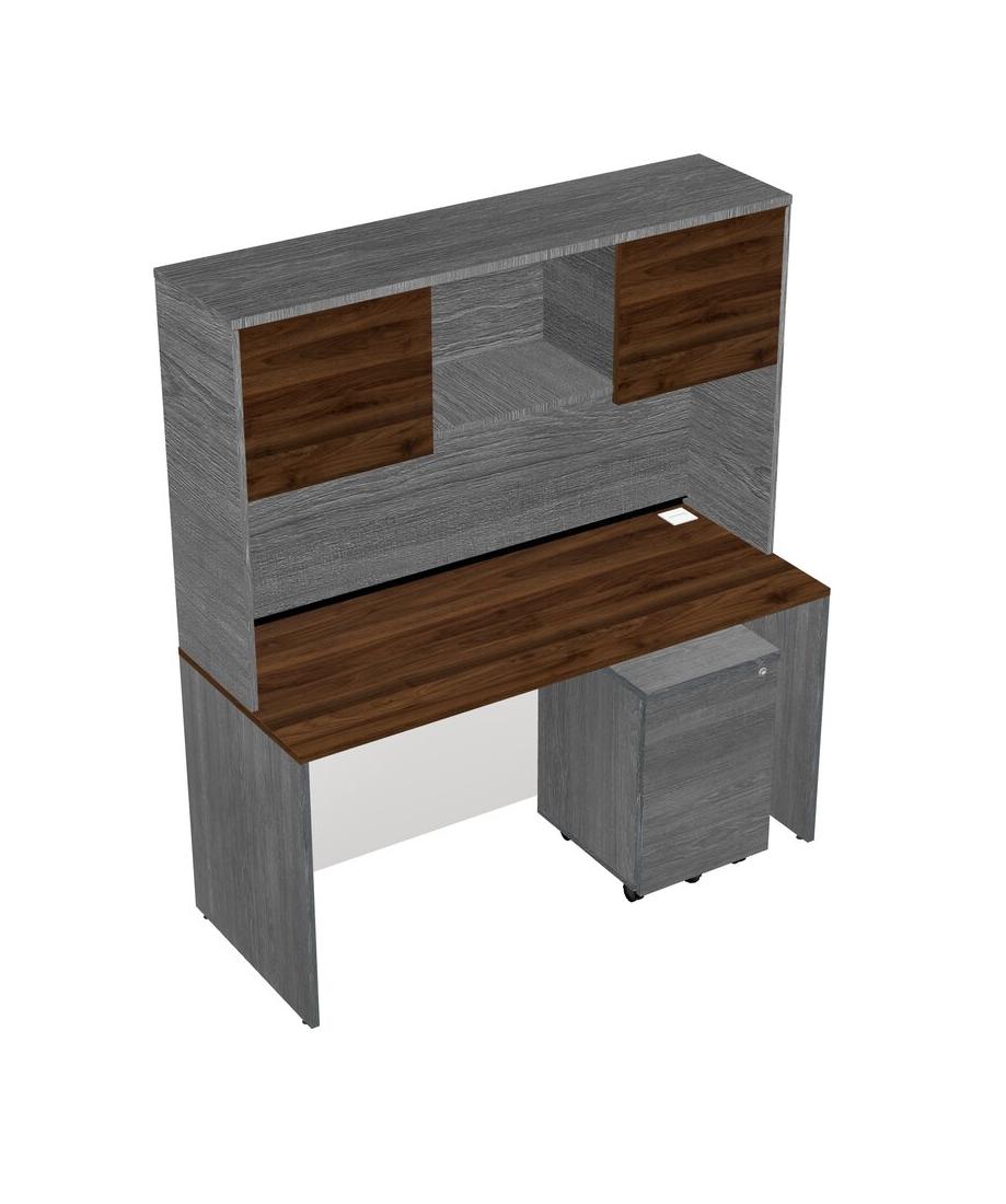 Columbia Walnut Rectangular Office Desk Plus Grey Wooden Mobile Drawers And Grey Hutch