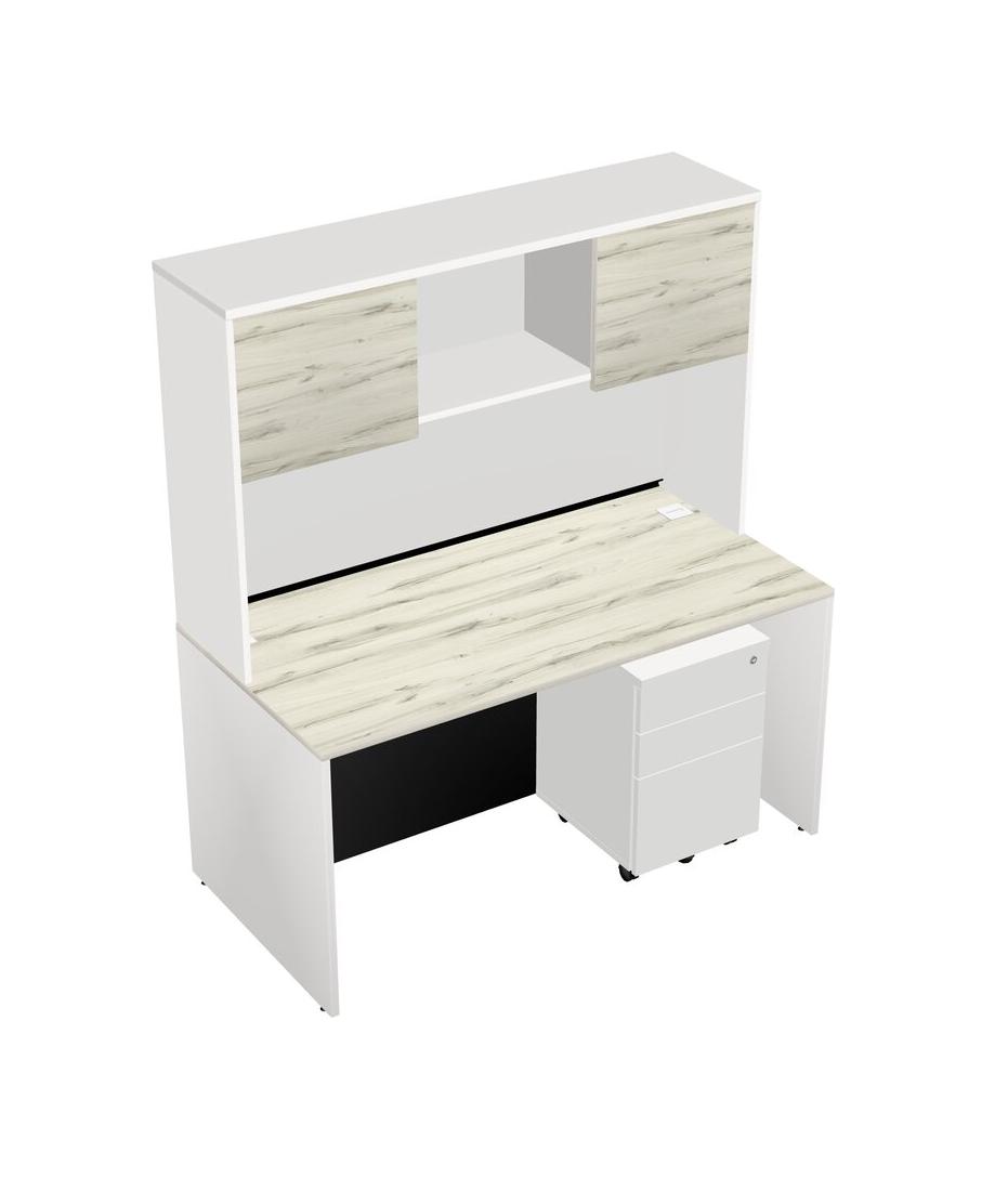 Heinne Holz Rectangular Office Desk Plus White Wooden Mobile Drawers And White Hutch