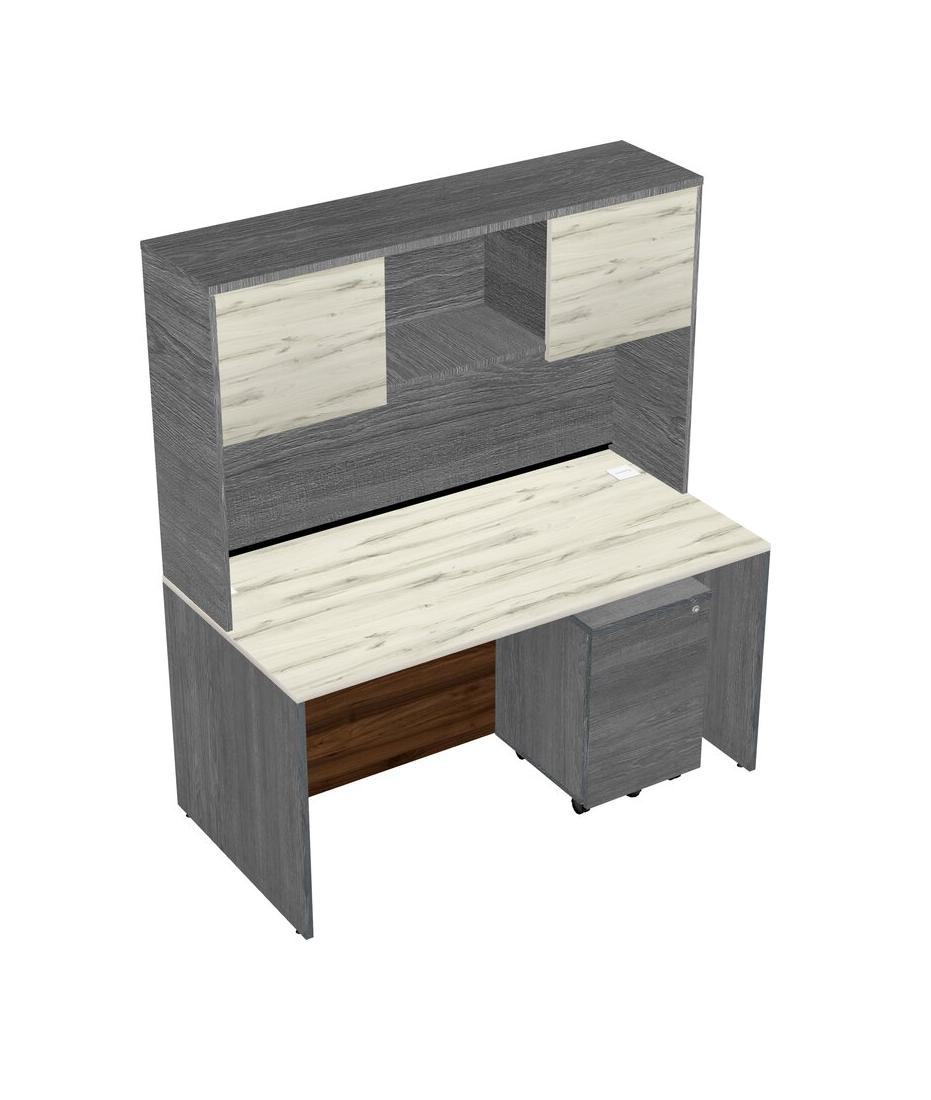 Heinne Holz Rectangular Office Desk Plus Grey Wooden Mobile Drawers And Grey Hutch