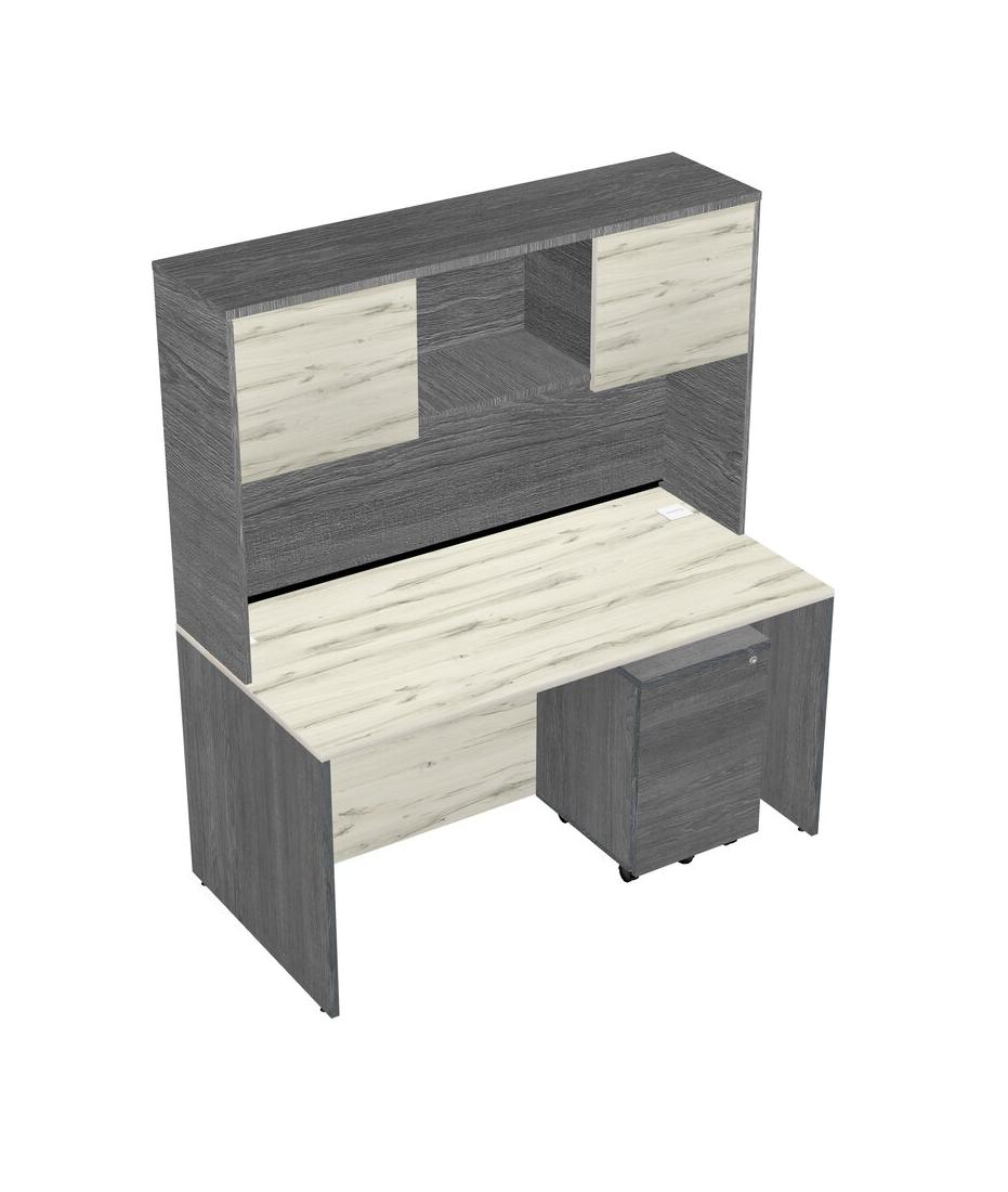 Heinne Holz Rectangular Office Desk Plus Grey Wooden Mobile Drawers And Grey Hutch