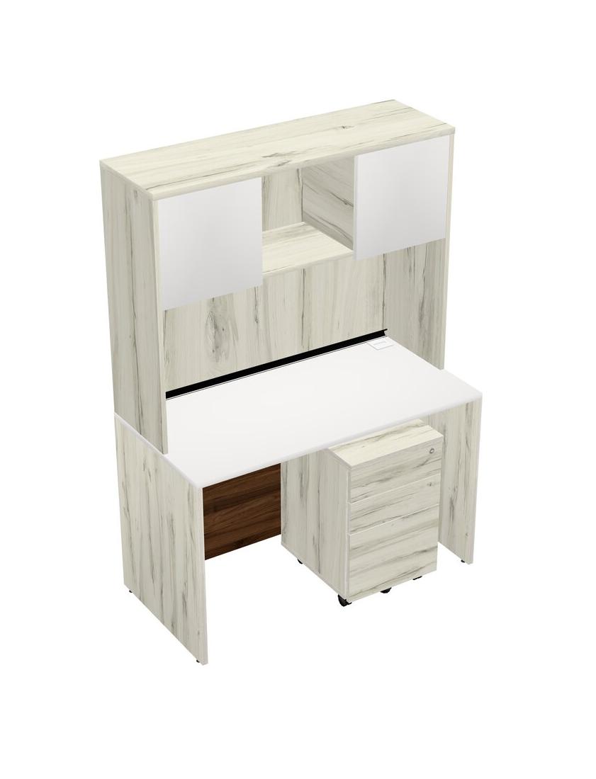 White Rectangular Office Desk Plus Heinne Holz Wooden Mobile Drawers And Heinne Holz Hutch