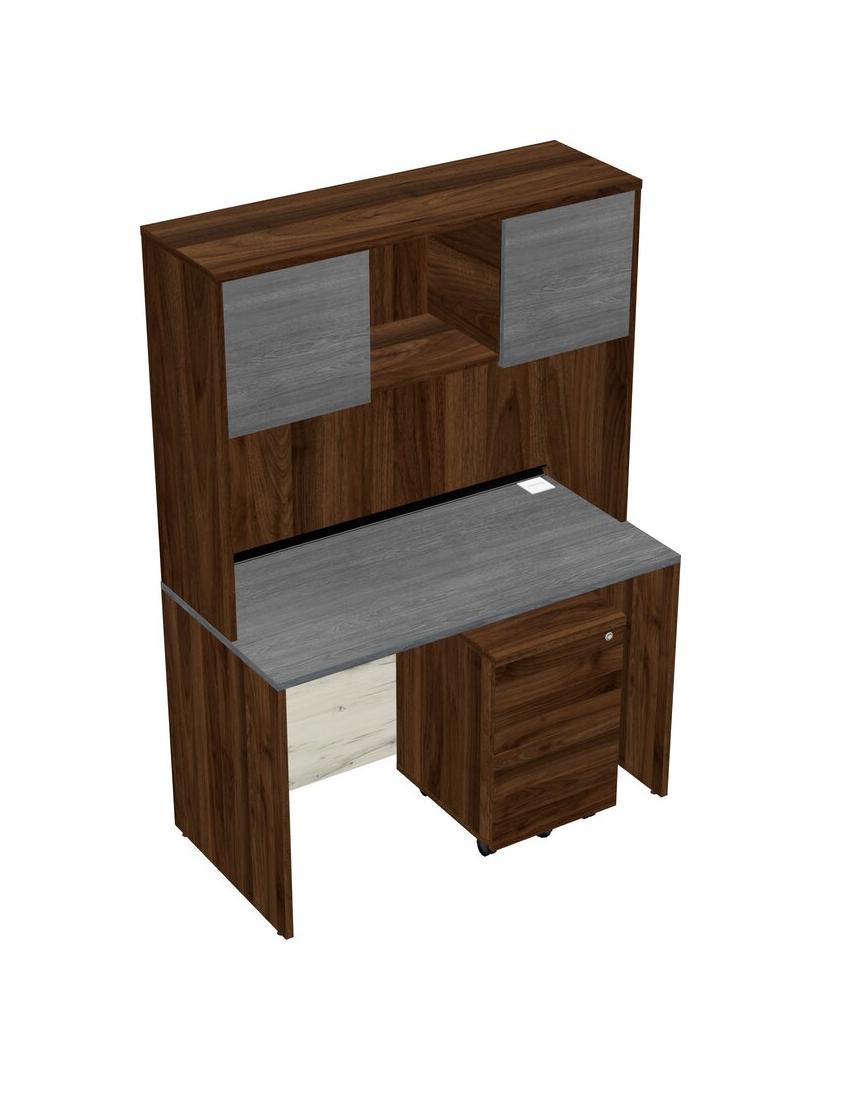 Grey Rectangular Office Desk Plus Columbia Walnut Wooden Mobile Drawers And Columbia Walnut Hutch