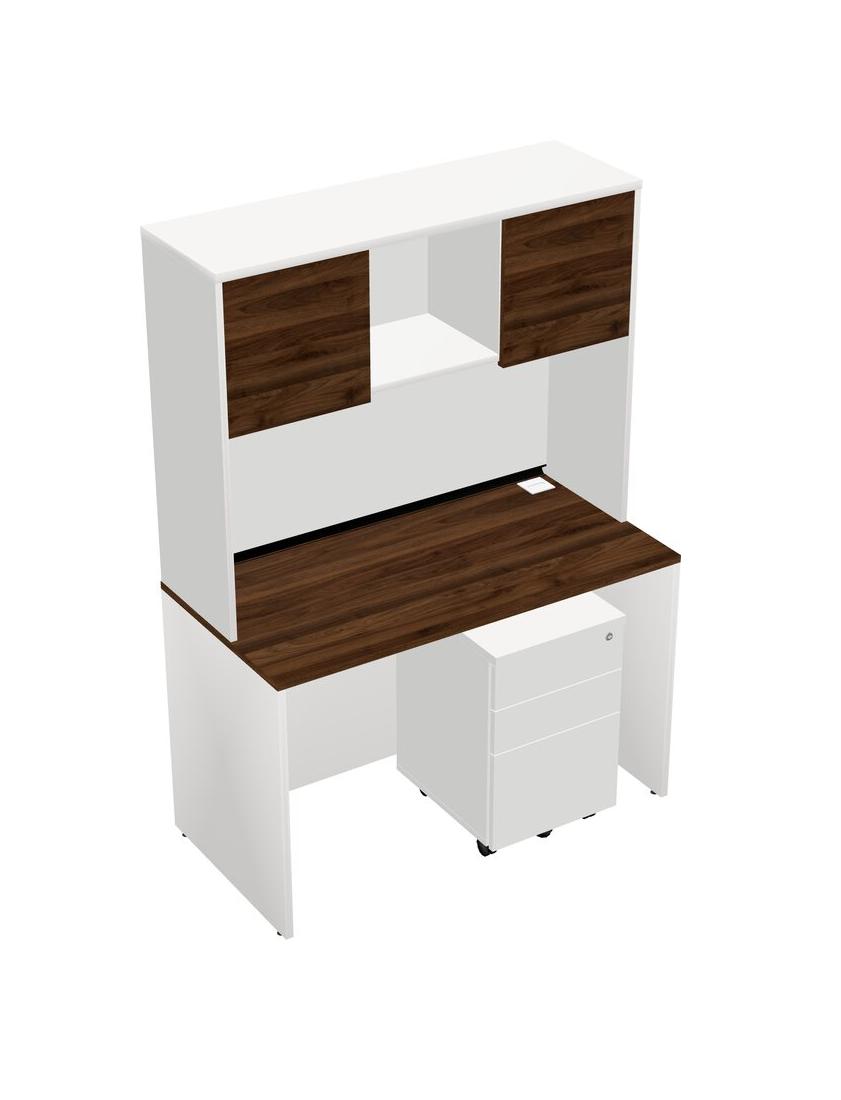 Columbia Walnut Rectangular Office Desk Plus White Wooden Mobile Drawers And White Hutch