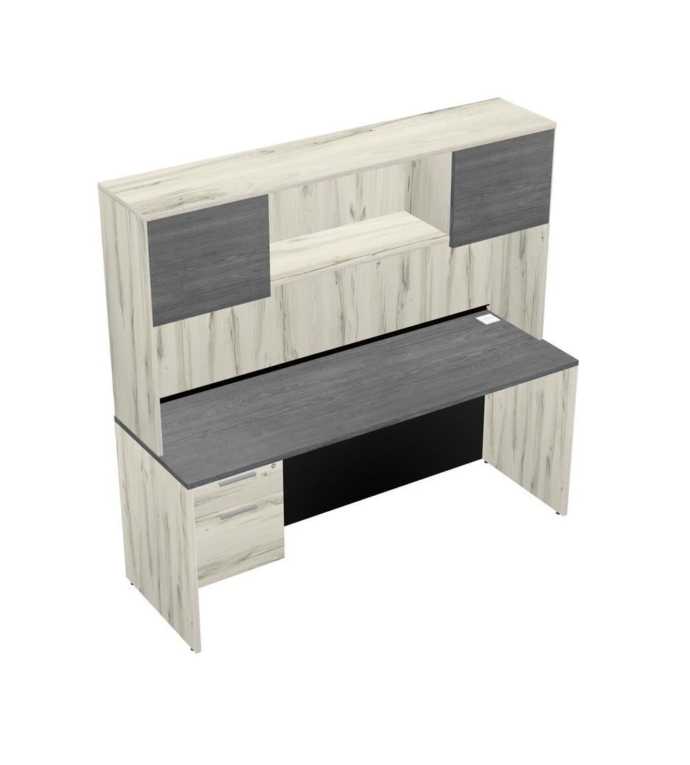 Grey Rectangular Office Desk Plus Heinne Holz Hanging Drawers And Heinne Holz Hutch