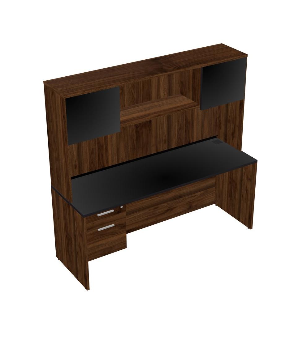 Black Rectangular Office Desk Plus Columbia Walnut Hanging Drawers And Columbia Walnut Hutch