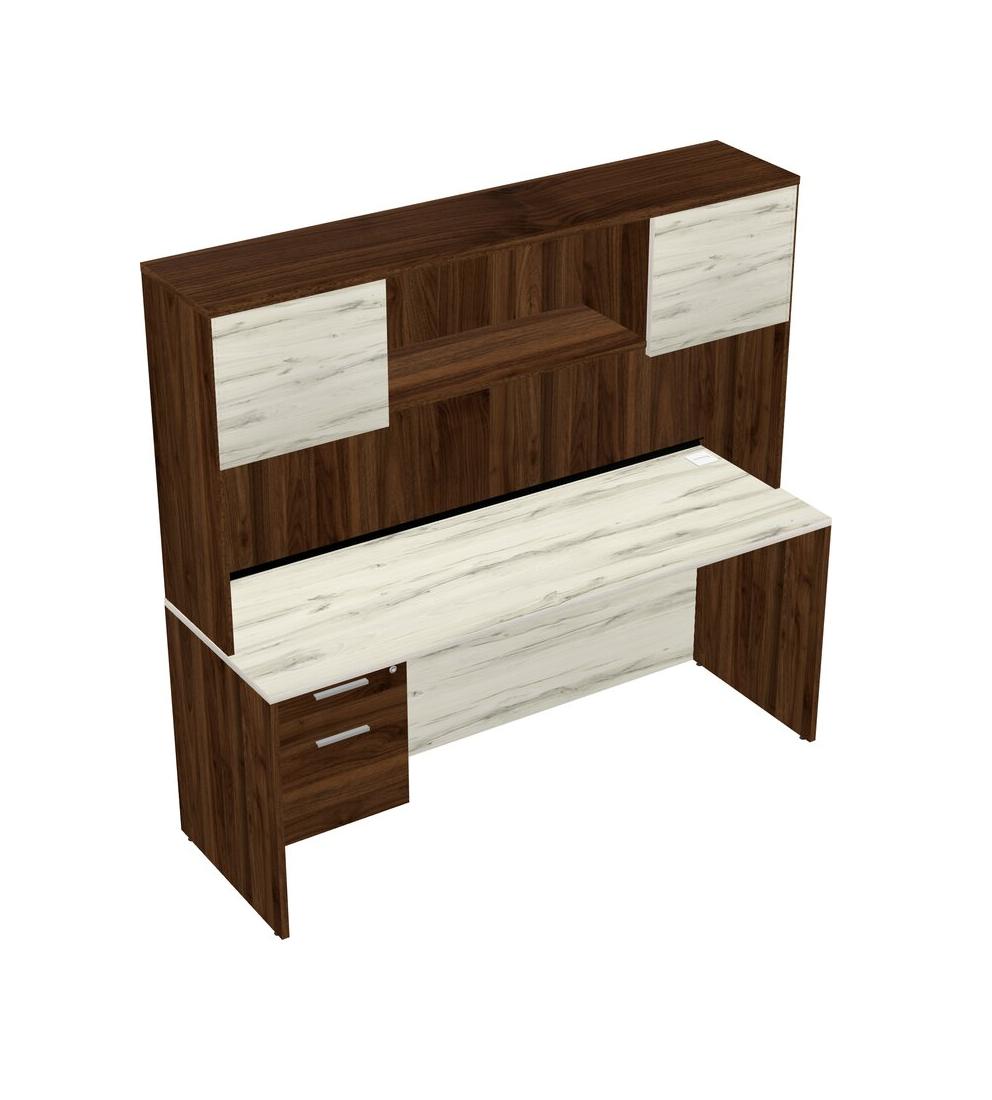 Heinne Holz Rectangular Office Desk Plus Columbia Walnut Hanging Drawers And Columbia Walnut Hutch