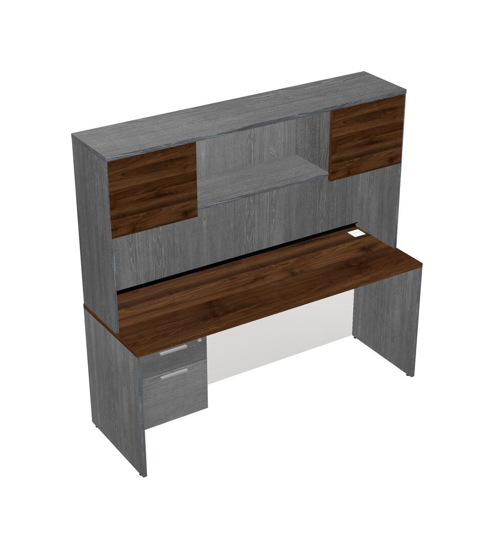 Columbia Walnut Rectangular Office Desk Plus Grey Hanging Drawers And Grey Hutch