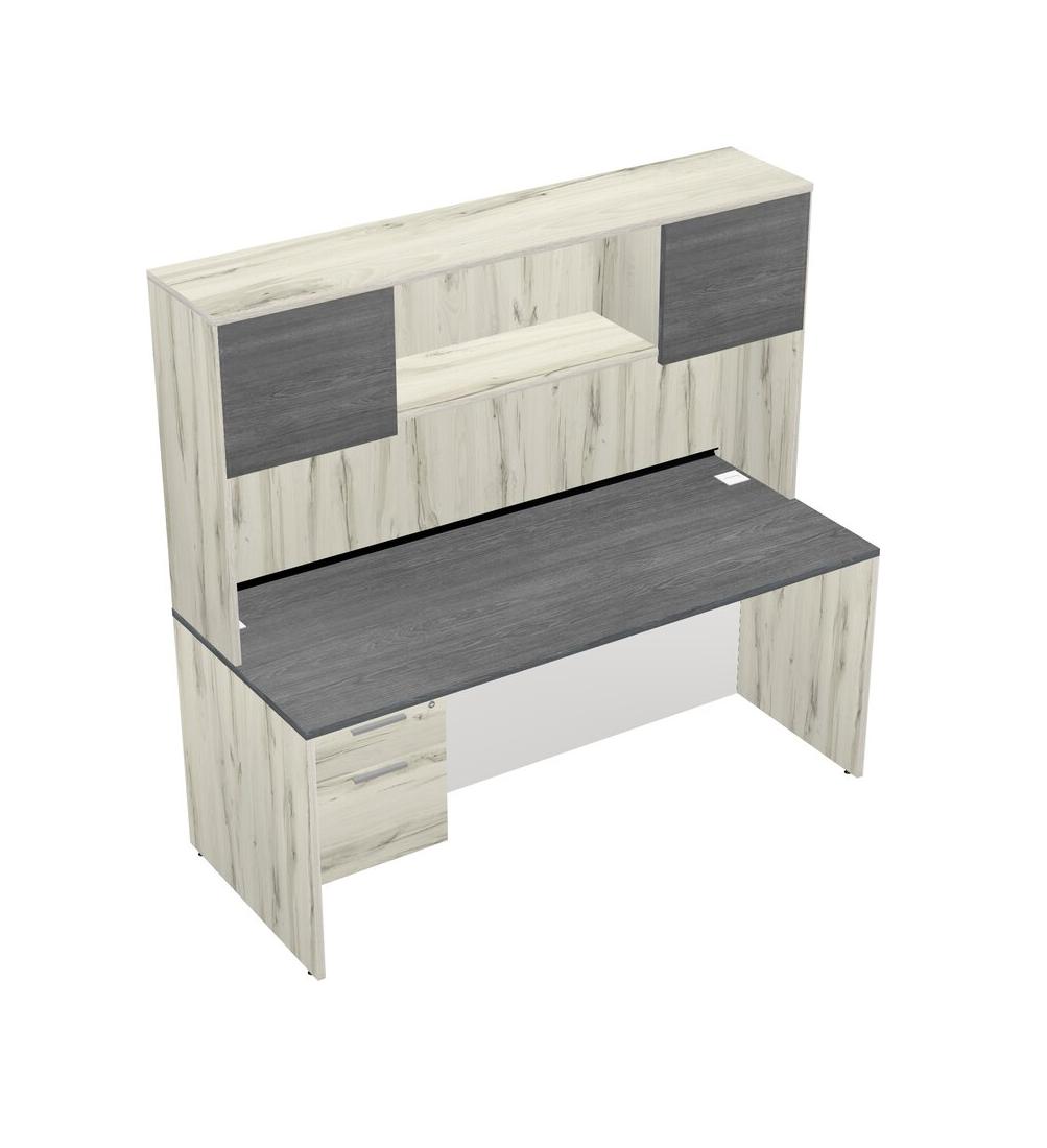 Grey Rectangular Office Desk Plus Heinne Holz Hanging Drawers And Heinne Holz Hutch